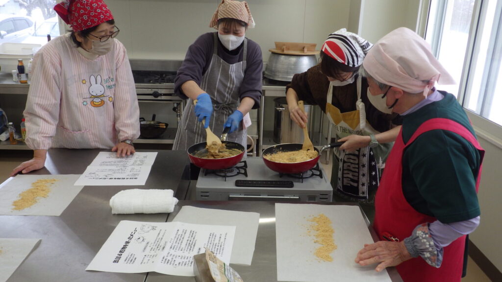 1月15日・1月29日・2月12日の全3回で「缶詰や乾物を使ったアイデアレシピ」をテーマに料理教室を開催しました。家にありそうな材料を使って、簡単にできるアイデアレシピを小林恵美先生より教えていただきました。参加者の皆さんが手際良いので、本当に簡単においしい料理が出来上がりました。教わった料理をさっそく家でも作ったよ~と次の回で報告してくれる参加者の方もいて、本当に良かったです。 今度作ってみたいメニューのリクエストなどもいただいたので、また来年度もおいしい料理教室の開催を企画したいと思います。