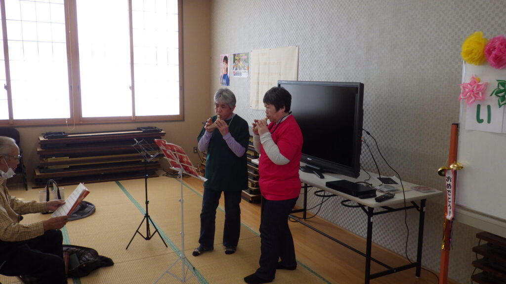 2月13日(金)、平成29年度から始まった「いきいき百歳体操」がめでたく400回を迎えました。みんなで記念撮影をしたり、オカリナの演奏を聴いたり、昼食会をしてお祝いしました。コロナ禍で中止していた時期もありましたが、皆さんの「百歳体操を続けて、健康でいきいきと暮らす」という強い志があったからこそ、この日を無事に迎えることが出来ました。いろいろな方に出前講座に来ていただいたり、たまにはみんなでお出かけをしたりして、色々な企画も交えて続けてきました。魅力的な企画のアイデアをどんどん出してくれる、世話人さんの尽力があってこそです。 400回を迎えて、さらに参加者の皆さんが健康でいきいきと幸せに暮らしていく手助けを末永く続けられるように、活動センターとしても頑張っていきたいと思います。